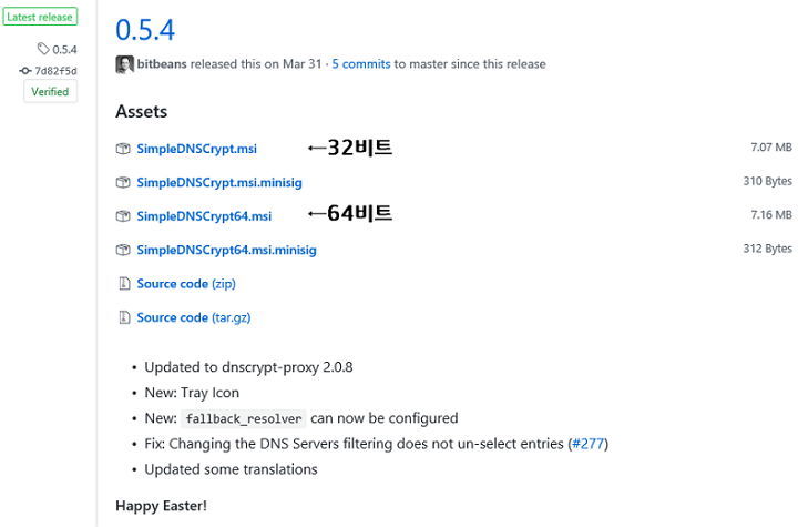 https://github.com/bitbeans/SimpleDnsCrypt/releases/ 로 접속해서