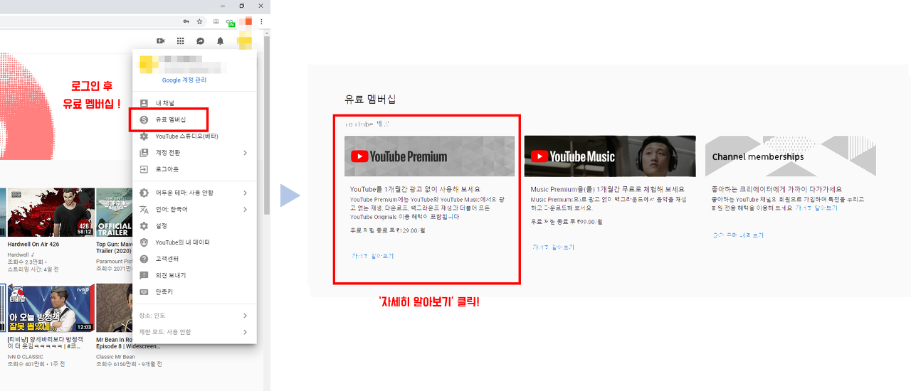 'Youtube Premium' 하단에 자세히 알아보기 눌러줍니다.