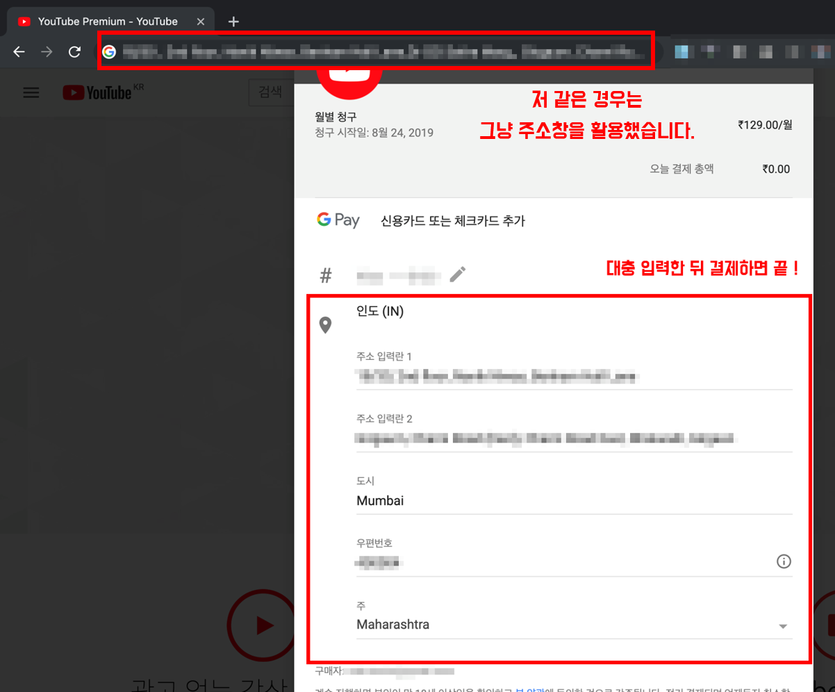 ('129루피'인지 확인하시고, 주소에는 인도 주소를 넣어 주세요!)