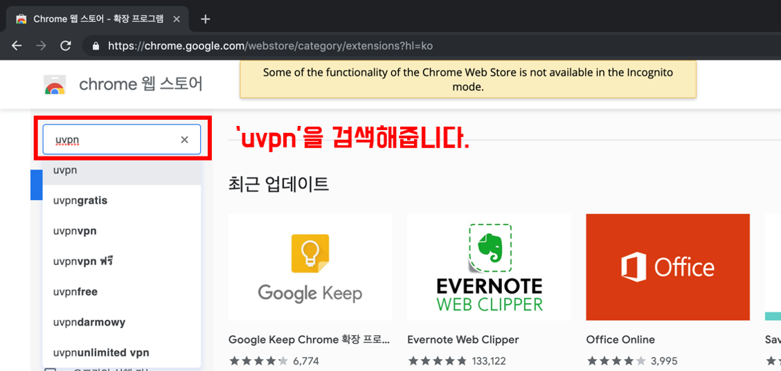 1. 크롬 웹스토어에서 VPN 앱 다운