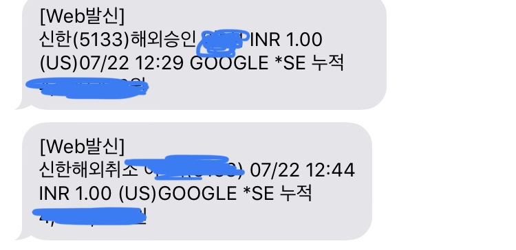 카드 확인용이라 금방 취소되니 걱정 안 하셔도 됩니다.