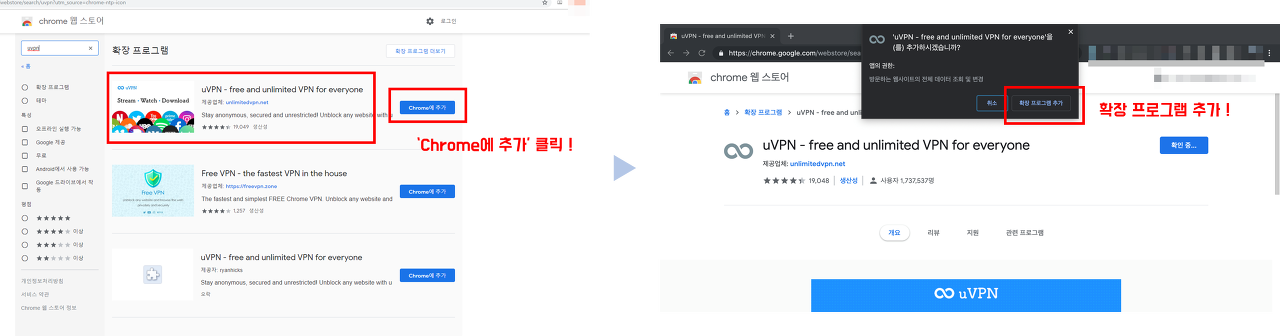 이어서 'uVPN'을 크롬에 추가해줍니다.