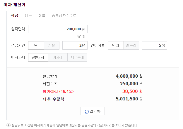 이렇게 구성이 되어 있으며 1년 또는 2년중 선택하여 가입할수있고 최소 1만원에서 최대20만원까지 가입이 가능합니다. 20만원을 2년(24개월) 불입시 아래와 같이 이자계산을 해볼 수 있습니다. 이건 필자도 가입중인 상품입니다. 꼭 가입하시는게 좋습니다 ^^.. 단 SKT 회선을 유지하셔야 해요.