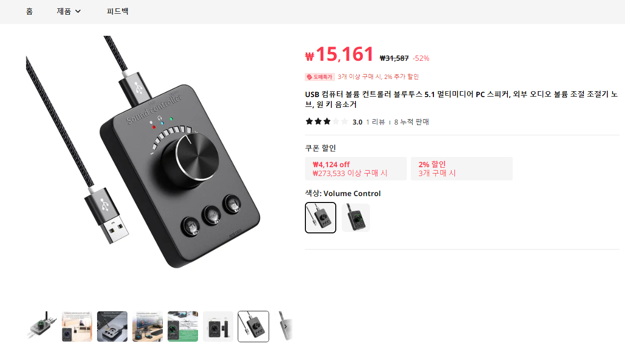제품명: USB 컴퓨터 볼륨 컨트롤러