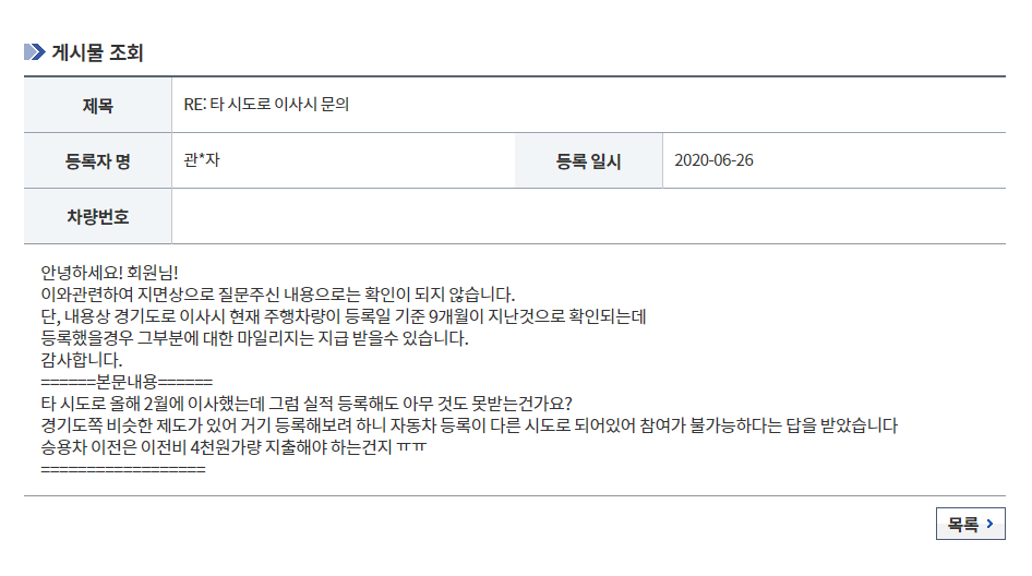일단 자동차 마일리지 제도 사이트에 로그인해보니 실적 등록 기간(6월)이 되어 등록을 하라고 안내가 되어 있었고, 문의 란에다가 주소이전 관련 문의도 남겨놓은 상태이니, 답변이 오면 업데이트 하겠다.
