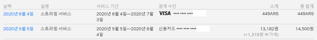 멤버쉽 원화로 결제하던 계정을 아르헨티나화로 결제하도록 바꾸었다.